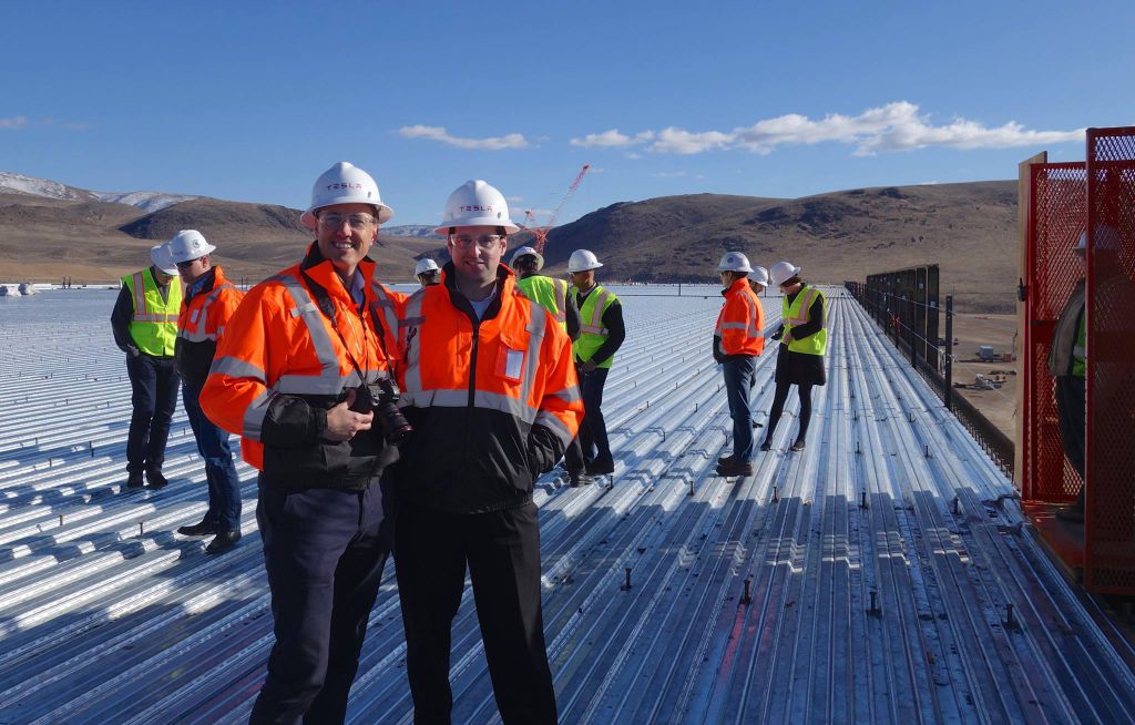 Nun veröffentlichte Steve Jurvetson einige neue Fotos von dem aktuellen Baufortschritt der Gigafactory, auf denen auch Elon Musk zu sehen ist. Scheinbar gab es kürzlich einen Besuch aus der Chefetage, damit sich eben diese einen guten Eindruck vor Ort machen kann. Die neuen Fotos zeigen zwar den Baufortschritt, doch kann man den Gesamtfortschritt daraus nur erahnen.
