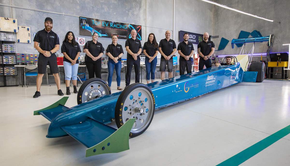 Gegen dieses Elektroauto (falls man es noch so nennen kann) hätte selbst der aberwitzig schnelle Tesla Roadster der nächsten Generation das Nachsehen: Das australische Team Top EV Racing baut einen Dragster mit 3,6 Megawatt Leistung von vier Motoren und hält sich mit einer Angabe für die Beschleunigung von 0 auf 100 Stundenkilometer erst gar nicht auf; bis 200 km/h sollen aber nur 0,8 Sekunden vergehen. Acht Weltrekorde will Top EV mit dem Gefährt einstellen – und die Motoren dafür kommen von einem anderen australischen Unternehmen, das sie auch für das Hyperloop-Konzept von Tesla CEO Elon Musk für geeignet hält.