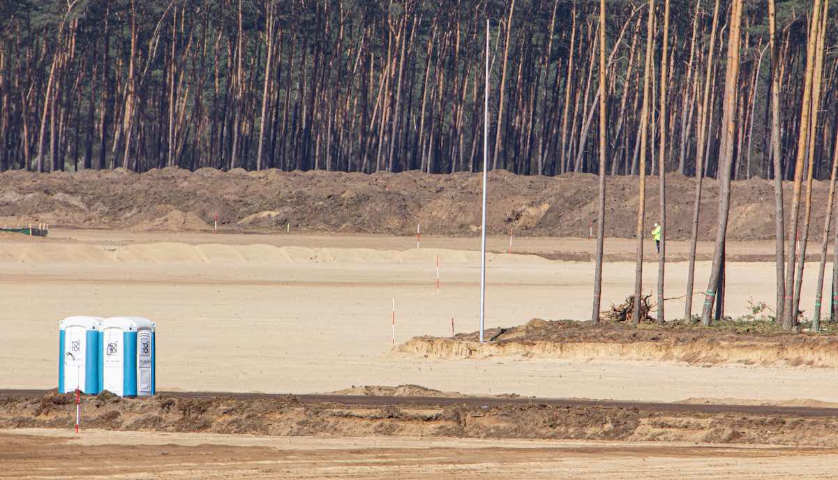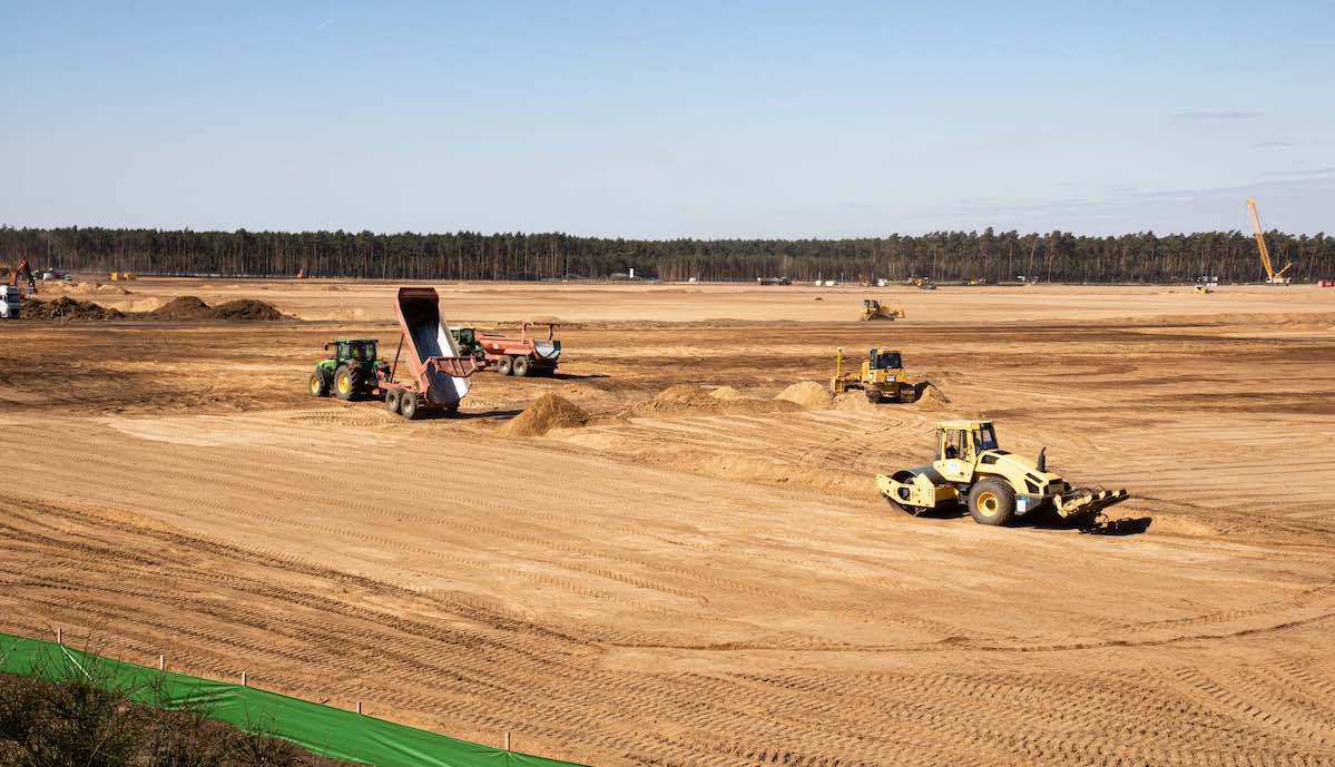 Das Gelände für die geplante Gigafactory von Tesla in Brandenburg (Giga Berlin) beginnt trotz einiger Schwierigkeiten ernsthaft wie eine Baustelle auszusehen. Der lokale Beobachter @gigafactory_4 veröffentlichte am Mittwoch neue Bilder von dem Grundstück bei Grünheide, das in den vergangenen Wochen zunächst gerodet und dann planiert wurde. Das Umweltministerium hat in dieser Woche bestätigt, dass Tesla vorab den nächsten Teil-Schritt beantragt hat, die Errichtung des Fundaments. Genehmigt soll er noch nicht sein, aber auf einem der Twitter-Bilder sind bereits Stapel mit Säcken zu sehen, die Material für den Bau enthalten könnten.