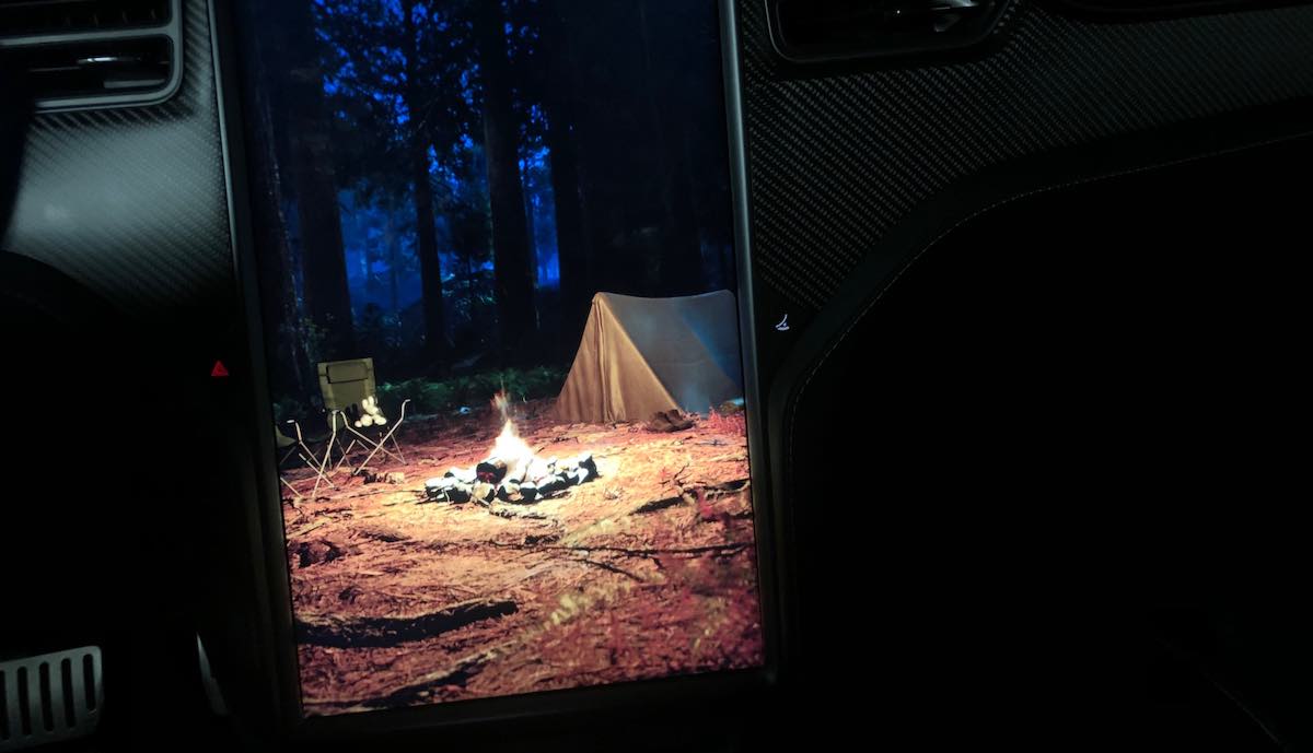 Entdeckt wurde das Cybertruck-Osterei (der Begriff wird eigentlich nicht übersetzt) jetzt von dem Blog Teslarati. Zu finden ist es im Camp-Modus von Tesla, der dafür sorgt, dass die Elektroautos auch bei längerer Standzeit mit Personen an Bord klimatisiert bleiben. Wie Teslarati jetzt in einem kurzen Twitter-Video zeigte, schaltet sich nach einigen Minuten in dem Modus ein romantisches Camping-Hintergrundbild auf dem Touchscreen ein.