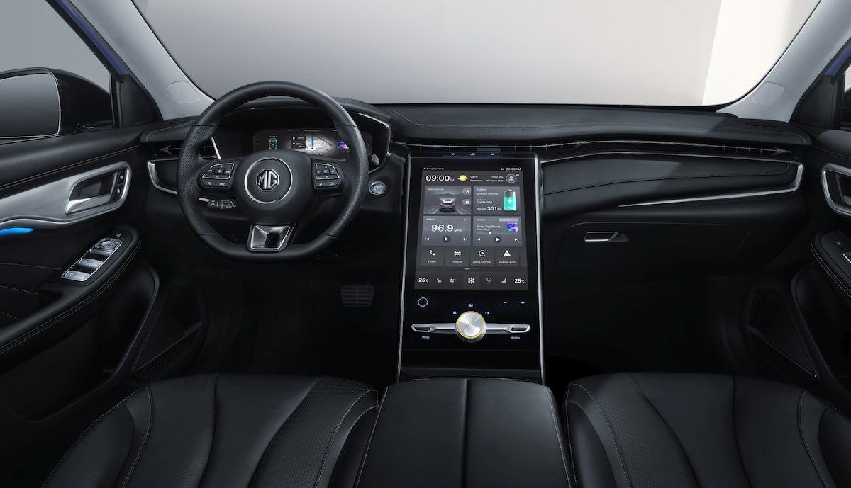 Für Reichweite und Laden nennt MG dieselben Daten wie für den Kombi (und ebenfalls keinen Preis), vielleicht wegen des Formats wirkt dieses Elektroauto aber moderner. Innen hat es einen im Hochformat eingebauten Mittel-Touchscreen, der mit 19 Zoll größer ist als in Tesla Model S und Model X. Und der Marvel R Electric nutzt nach den Angaben dazu ein Antriebssystem mit zwei Motoren an der Hinterachse und einem an der Vorderachse, wie es Tesla vor kurzem als „Plaid“-Option für seine aufgefrischten Model S und Model X angekündigt hat.