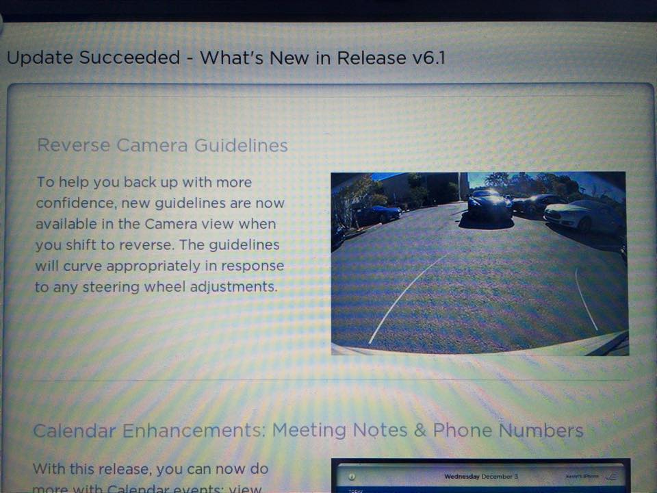 Auch wird es mit der Firmware 6.1 eine Art schlaue Klimatisierung geben, die aus dem Fahrverhalten bzw. der Fahrtzeiten des Besitzers eine Muster abzuleiten versucht – beispielsweise wenn man täglich um sieben Uhr zur Arbeit fährt – und das Fahrzeug während des Aufladens Zuhause oder bei der Arbeit auf die zuletzt eingestellte Temperatur bringt bevor man einsteigt.