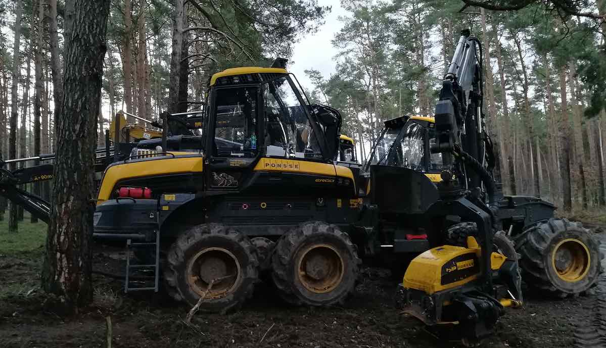 Veröffentlicht wurden die neuen Bilder am Montag von @gigafactory_4, der regelmäßig über das Tesla-Projekt berichtet. Sie zeigen zwei Arbeitsfahrzeuge am südlichen Rand des für Tesla vorgesehenen Grundstücks in Grünheide, bei denen es sich um so genannte Harvester oder Holzvollernter handelt. Diese können Bäume in schneller Folge fällen, entasten und ablegen. Neben den zwei gelben Maschinen standen laut @gigafactory_4 ein Ladefahrzeug und ein Raupenfahrzeug von Caterpillar, ein Stück weiter eine Walze und eine Planierraupe.