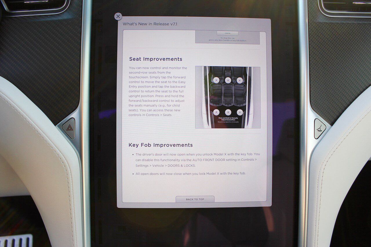 Ein neues Software-Update v7.1 (2.20.45) wurde kürzlich für das Tesla Model X over-the-air veröffentlicht (via Teslarati), welches erweiterte Einstellmöglichkeiten für die Türen und Sitze des elektrischen SUV bietet. Unter anderem ist es jetzt möglich, die zweite Sitzreihe von dem Touchscreen der Mittelkonsole einzustellen.