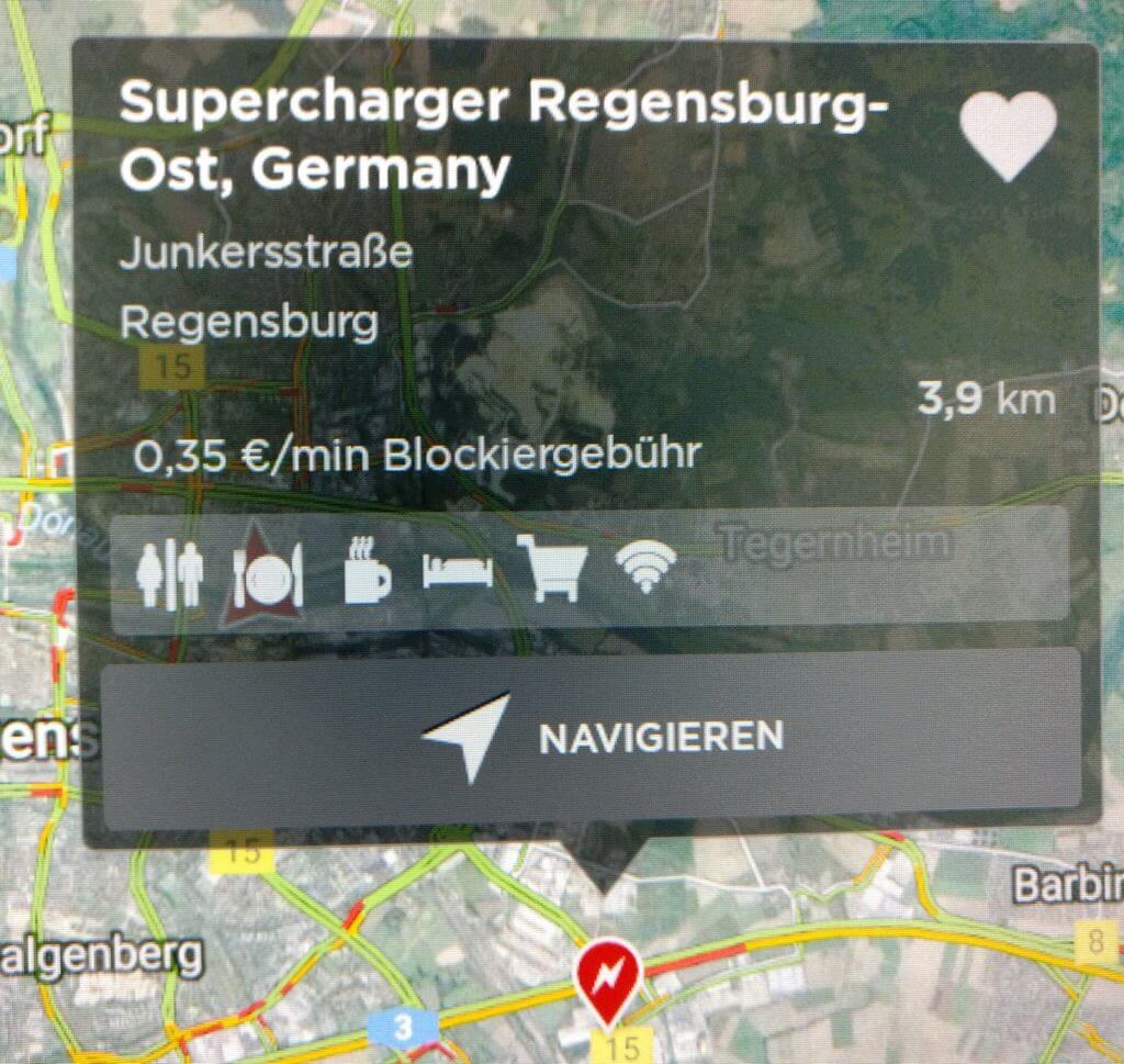 Sobald das Update eingespielt wurde, kann man in der Kartenansicht (Maps) des Fahrzeugs nicht nur die Supercharger auf der Route sehen, sondern auch naheliegende Lokalitäten. Man kann z.B. sofort sehen, ob in der direkten Umgebung der Supercharger Restaurants sind, die über W-Lan oder Toiletten verfügen, und so seine Reiseroute noch besser nach seinen Wünschen planen.