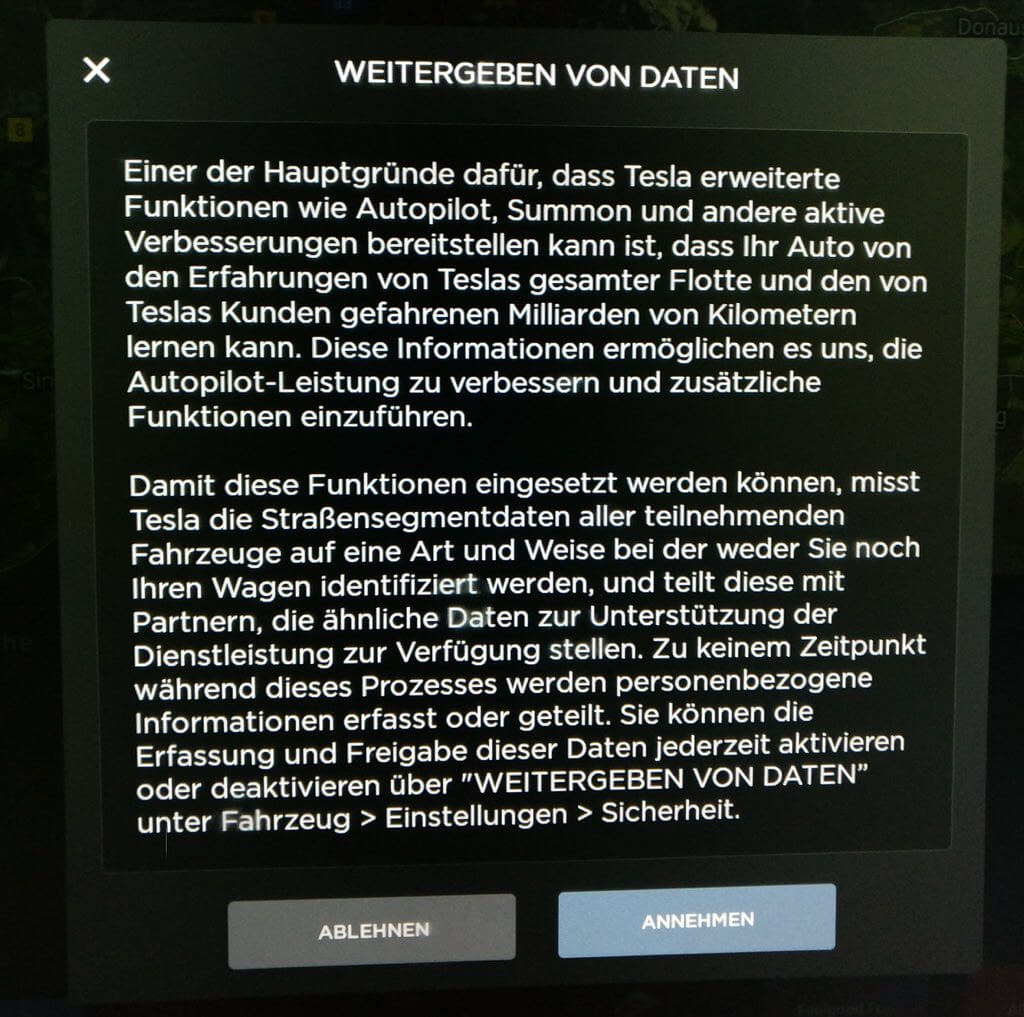 Eine weiterer Neuerung, die mittels Update eingespielt wurde, betrifft den Autopiloten. Dieser konnte zuvor max.10 km/h über der erlaubten Fahrgeschwindigkeit der jeweiligen Straße eingestellt werden (gilt nicht für Autobahnen), sodass er sich automatisch an diese eingestellte Toleranz-Überschreitung anpasste. Fuhr man beispielsweise von einem Straßenabschnitt mit 100 km/h Tempolimit in einen auf 80 km/h begrenzten Bereich und die eingestellte Toleranz lag bei 10 km/h, so bremste der Autopilot auf 90 km/h ab.