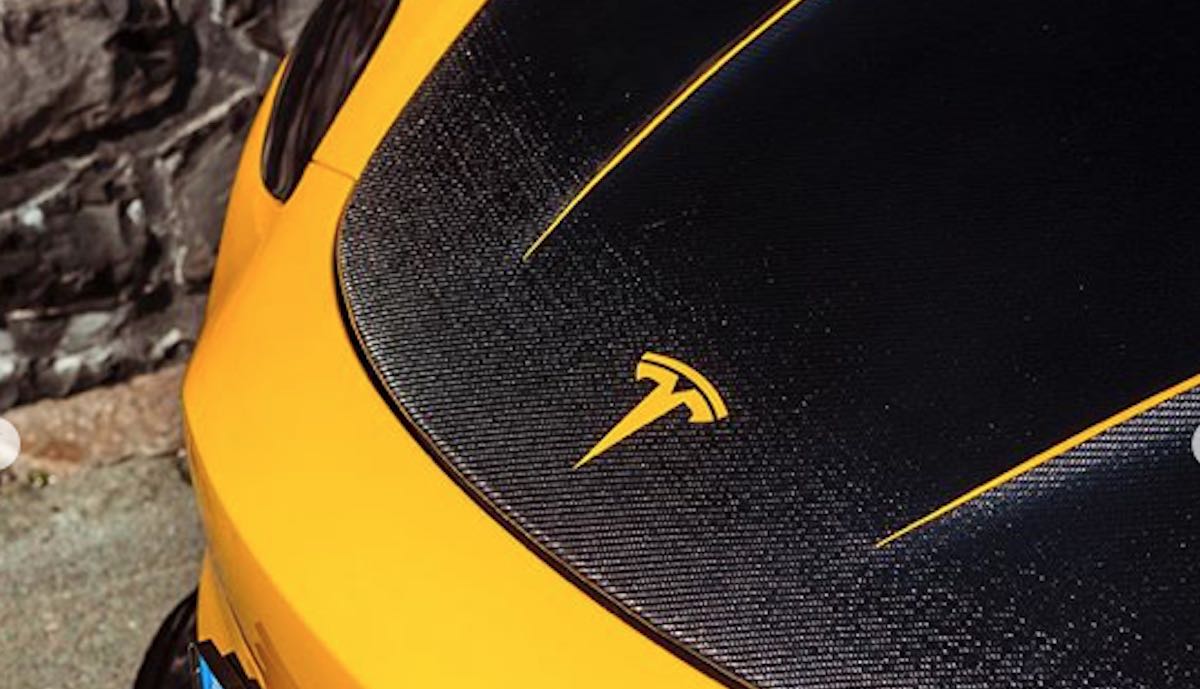 Um die Folierung schließlich kümmerte sich JD Customs den Angaben zufolge selbst. Sie ist vorne in Gelb gehalten und geht an der Seite mit zackigen Mustern in Silber und dann Dunkelgrau über. Schweller rundum sind im Carbon-Look gestaltet, ebenso wie die Frunk-Haube.