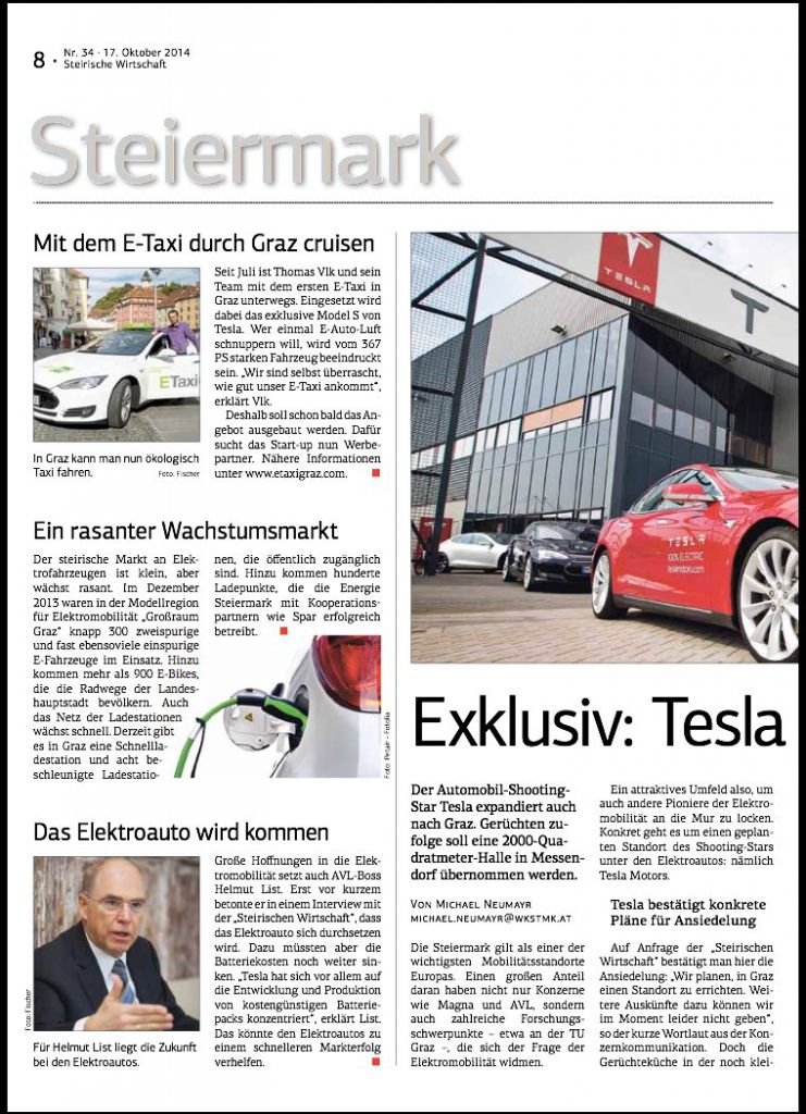 Wie Tesla Motors der Steierische Wirtschaft bestätigte, plant man aktuell einen Standort in Österreich, genauer in Graz, der Landeshauptstadt der Steiermark mit circa 270.000 Einwohnern. Laut ersten Gerüchten soll der kalifornische Autobauer bereits eine Halle mit 2.000 Quadratmetern Fläche angemietet haben. Tesla Motors kommentiert solche Gerüchte jedoch nicht.