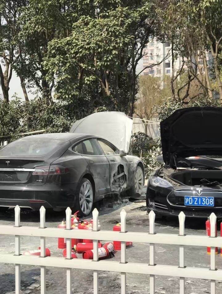 Aktuell ist nicht bekannt, ob das Feuer vom Fahrzeug selbst oder durch etwas im Fahrzeug ausgelöst wurde. Betroffen ist ein Tesla Model S P85 und ein weiteres Model S, welches sich neben diesem befand und entsprechend beschädigt wurde. Zur Löschung des Feuers wurden offenbar zahlreiche Feuerlöscher verwendet, die auf einigen Bildern (via Reddit) zu sehen sind: