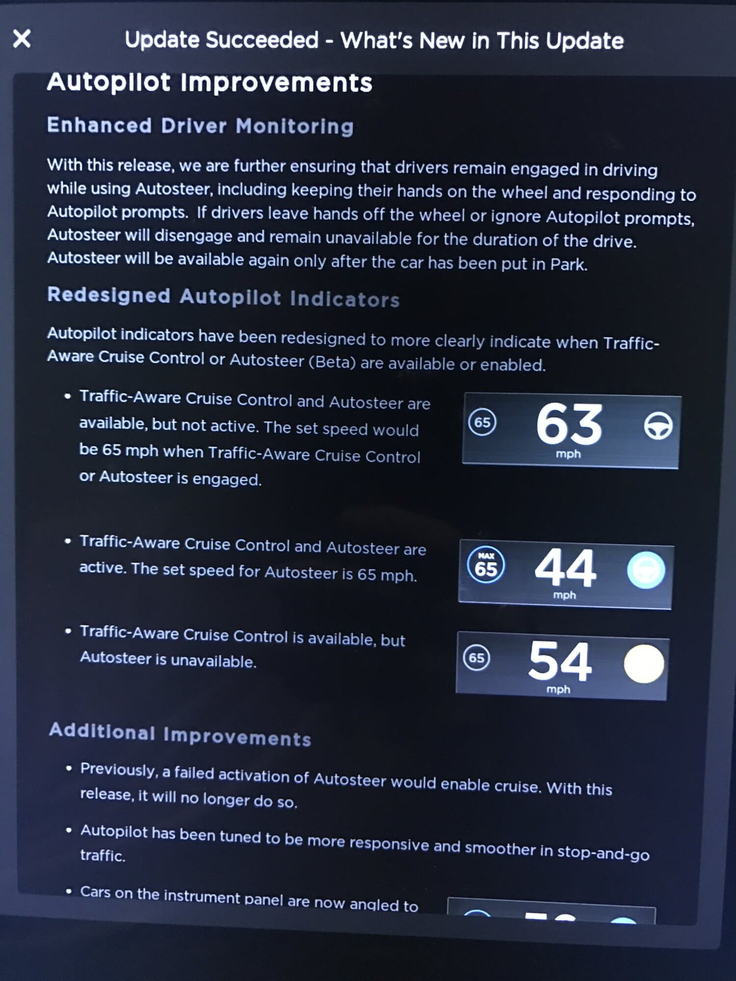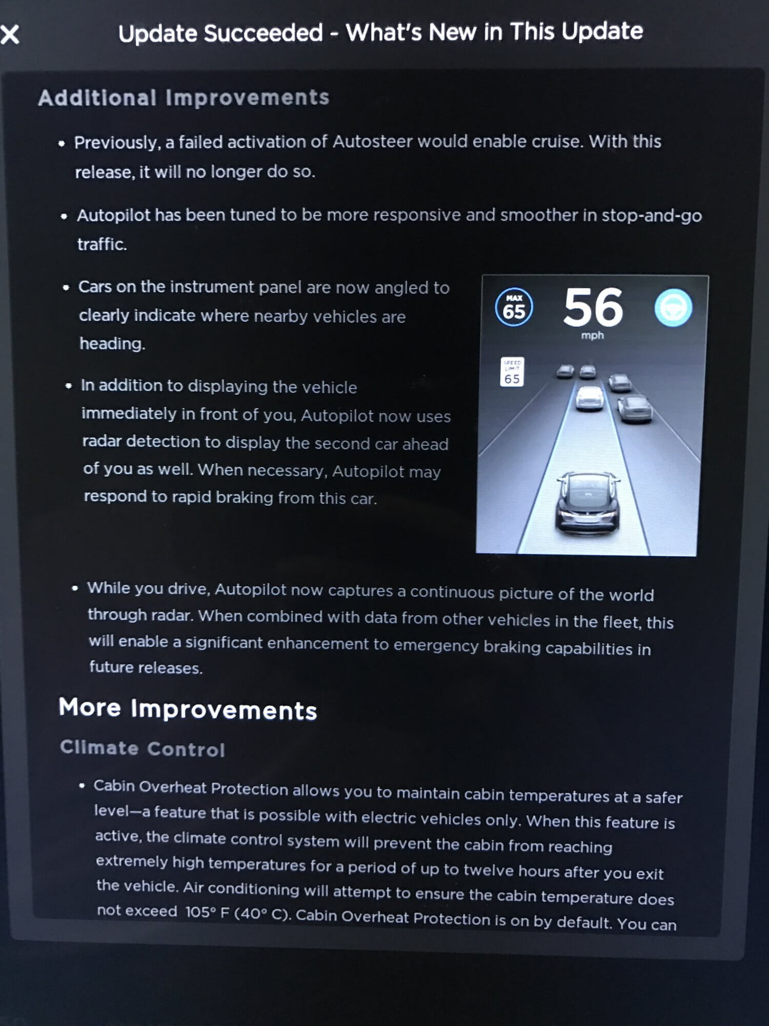 Anbei die Release Notes, die alle Details zum neuen Update enthüllen (via Reddit). Leider sind diese auf Englisch, da das Update bisher auf kaum einem Fahrzeug eines deutschsprachigen Kunden (außer Beta-Tester) eingespielt wurde. Generell rollt das Update sehr langsam aus, da sich bisher auch nur wenige Personen im englischsprachigen Firmware-Tracker eingetragen haben.