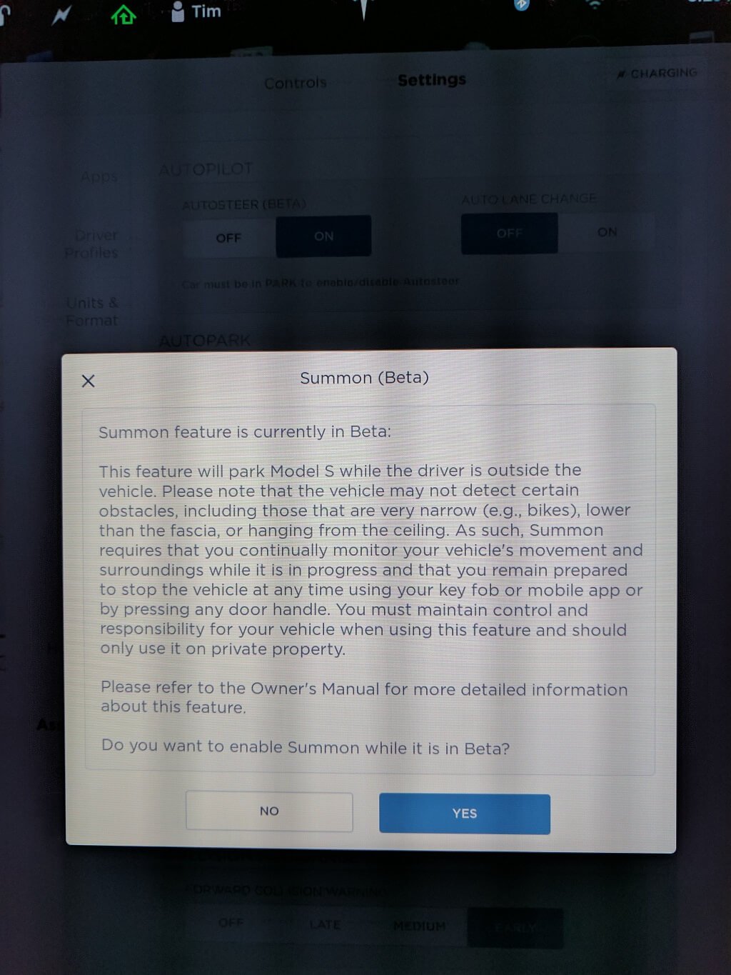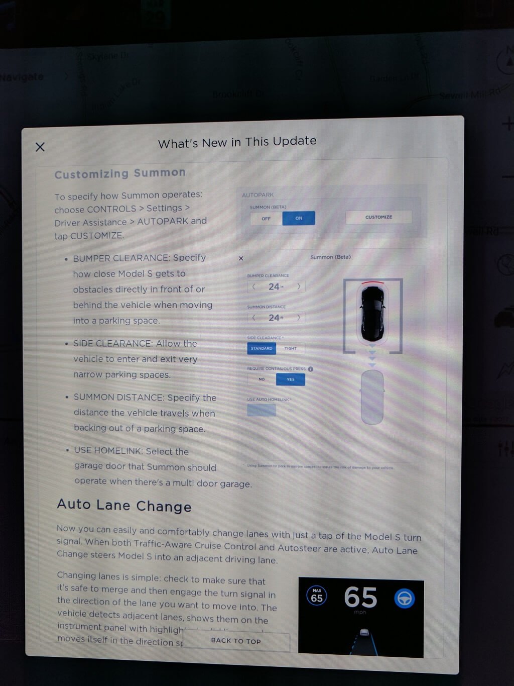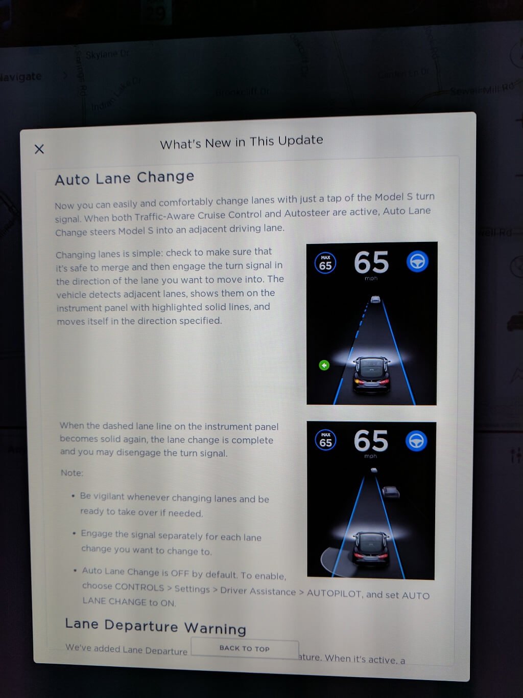 Tesla merkt an, dass zunächst eine Kalibrierung beim Model S nötig ist, bevor man die Lenkautomatik mit höherer Geschwindigkeit als 90 km/h nutzen kann. Das Fahrzeug führt diese Kalibrierung innerhalb weniger Tage automatisch durch, wenn man in der Zeit auf „gut markierten Schnellstraßen“ fährt. In der Zwischenzeit kann man die Lenkautomatik bis 90 km/h nutzen.