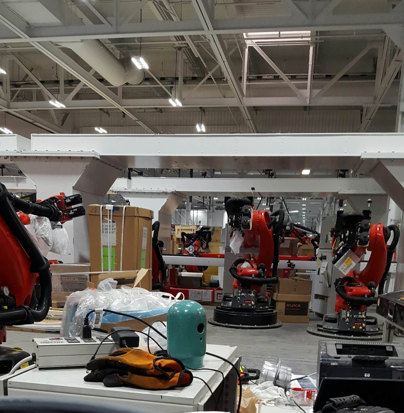 Der Servicetechniker erklärte im besagten Forum, dass er mit weiteren Mitarbeitern für die nächsten sieben Wochen vor Ort sein wird, um die 467 Roboter und 21 KL Lineareinheiten zu installieren. Lineareinheiten dienen als Zusatzachse für die Roboter und sehen wie folgt aus: