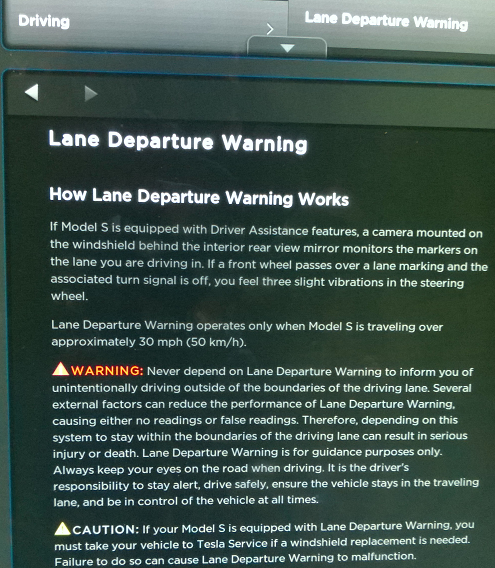 Im Forum Tesla Motors Club wird gerade mächtig spekuliert, wann die neuen Fahrerassistenzsysteme kommen, welche ein User in seinem Bedienungshandbuch zur Softwareversion 6.0 entdeckt hat. Dabei handelt es sich um eine Geschwindigkeitsregelanlage und einen Assistenten zur Warnung beim Verlassen der Spur. Beide Assistenten nutzen eine Kamera.