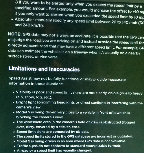 Wenn es in einzelnen Streckenabschnitten keine Beschilderung gibt, wird mittels GPS versucht die erlaubte Geschwindigkeit zu erfahren. Verschiedene Einstellungen erlauben es dem Fahrer bei Überschreitung der erlaubten Höchstgeschwindigkeit entweder dies nur im Display angezeigt zu bekommen oder aber auch einen entsprechenden Signalton zu hören.