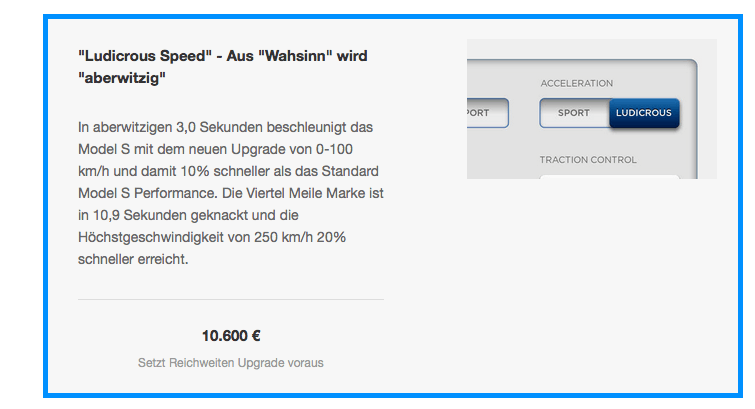 Wer nicht nur Wert auf das zügige Erreichen der 100 km/h legt, dem sei gesagt, dass die auch die Viertel Meile in 10,9 Sekunden geknackt ist. Ebenfalls beeindruckend: Die Endgeschwindigkeit von 250 km/h wird ganze 20 Prozent schneller erreicht. Wenn auch aktuelle Besitzer des P85D das Upgrade erhalten möchten, müssen sie einen kleinen Aufpreis dafür zahlen (US: 5.000 US-Dollar).