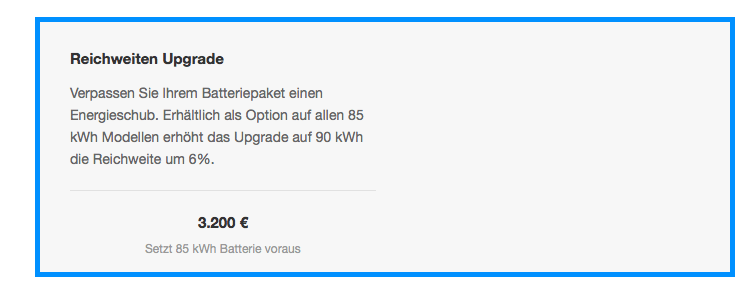 Die wohl größte Überraschung war die Ankündigung des Batterie-Upgrades auf 90 kWh, welches zu einem Preis von 3.200 Euro ab sofort für alle 85 kWh-Batterien beim Neukauf verfügbar ist. Damit steigt die Reichweite laut Tesla Motors um insgesamt sechs Prozent. Wenn die Kalifornier hierbei von den NEFZ-Werten ausgehen, bedeutet das statt 491 nun 520 Kilometer Reichweite.
