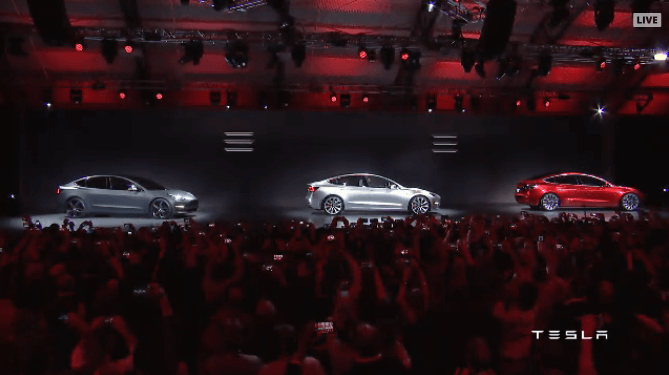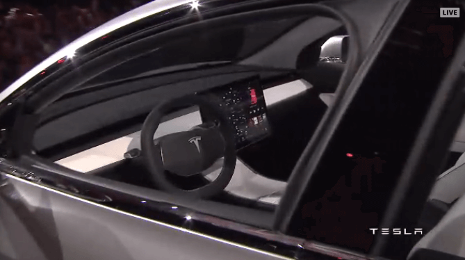 Das Model 3 wird in der Basisversion den Spurt von 0-60 mph (also 0-97 km/h) in 6 Sekunden bewältigen. Zudem soll es eine Mindestreichweite von 215 EPA-Meilen haben, was 346 Kilometern entspricht. Bei Crash-Tests soll das Fahrzeug in jeder Kategorie fünf Sterne erhalten. Außerdem besitzt das Model 3 den größten Stauraum in seinem Segment (u.a. wegen dem „Frunk“, also den vorderen Stauraum) und verfügt über eine Panorama-Heckscheibe, die ab der B-Säule beginnt. Die Karosserie besteht aus Stahl und Aluminium, wobei man weniger Aluminium als im Model S oder X nutzt. Und das alles ab 35.000 US-Dollar.