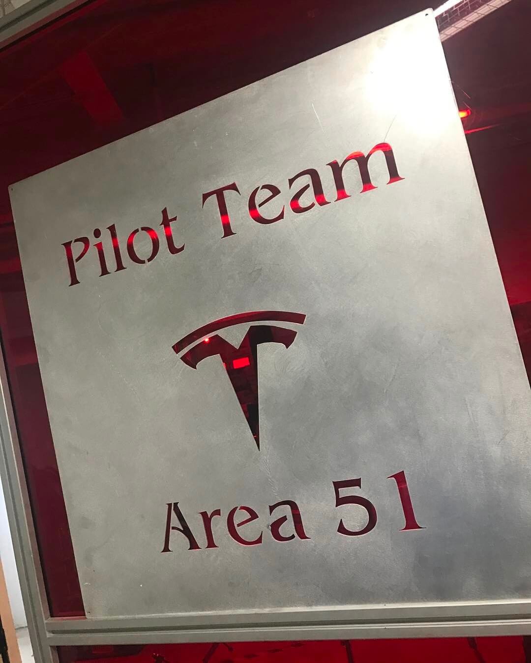 Auf einem der zwei Bilder ist lediglich ein Schild aus Metall zu sehen, auf dem „Pilot Team“ und „Area 51“ zu lesen ist. Die Model 3-Produktionsstraße soll quasi Teslas eigene Area 51 sein. Interessanter ist jedoch das zweite Bild, welches die Produktionsstraße mit einigen Mitarbeitern und höchstwahrscheinlich ein Model 3-Fahrgestell zeigt.