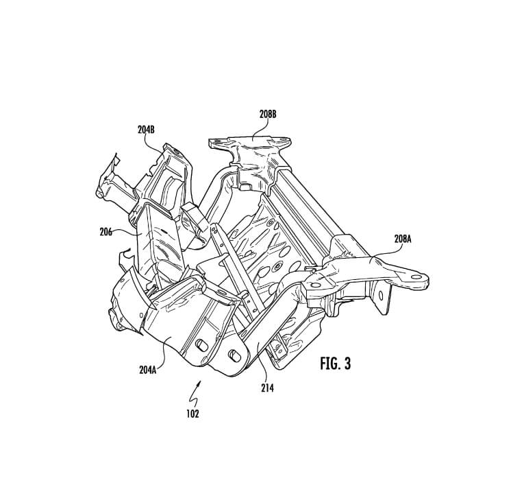 Das sogenannte Fahrschemel ist ein Teilrahmen eines Kraftfahrzeugs, an dem Aggregate wie der Motor sowie die komplette zugehörige Achsgruppe befestigt sind. Im Falle von dem eingereichten Patent von Tesla Motors besteht dieses Konstrukt aus zwei miteinander verbundenen Teilen, wobei sich ausschließlich der vordere Teil vom Fahrzeug ablösen und nach unten einknicken kann.