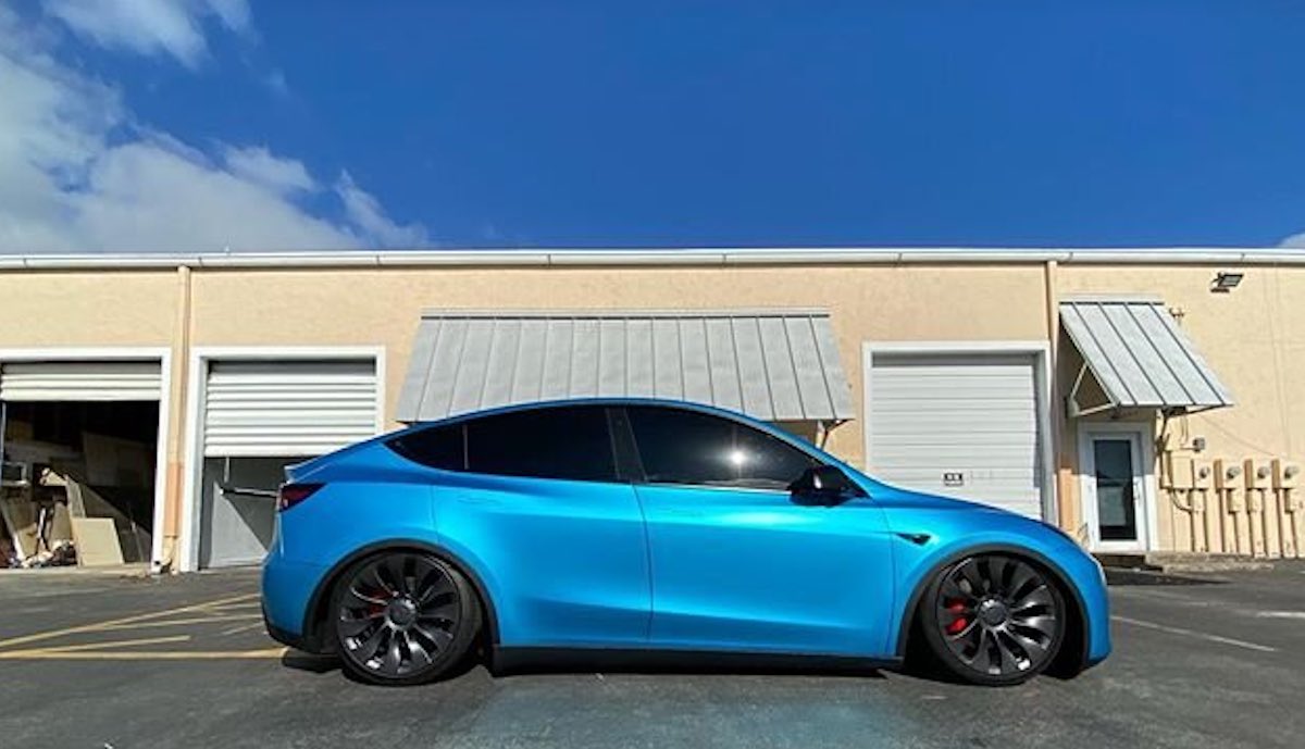 Kaum wird das Model Y in den USA ausgeliefert, stürzen sich auch schon die Tuner darauf – wobei es wie bei den Elektroautos von Tesla üblich bislang weitgehend bei optischen Modifikationen bleibt. Der auf Tesla spezialisierte Tuning-Anbieter Unplugged Performance, der schon im Vorfeld ein ganzes Karosserie-Kit für den Elektro-Crossover vorgestellt hatte, präsentierte real jetzt zunächst eine moderate Tieferlegung. Eine weitere Tuning-Firma zeigte ein Model Y in hellblauer Metallic-Folie , das nach ihren Angaben auf Luftfederung umgebaut wurde.