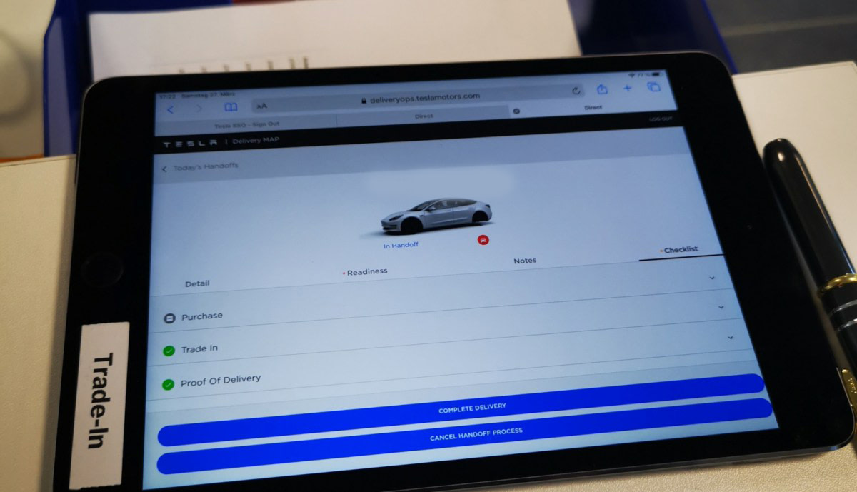 Kurz darauf erhielten wir per Mail eine genaue Beschreibung zum Ablauf. Jedenfalls zum zweiten Teil – der sogenannte „Trade-In“, also der Ankauf unseres alten Model 3 durch Tesla, war darin nicht beschrieben. Um 17 Uhr sollten wir vor Ort sein, in diesem Fall Berlin.