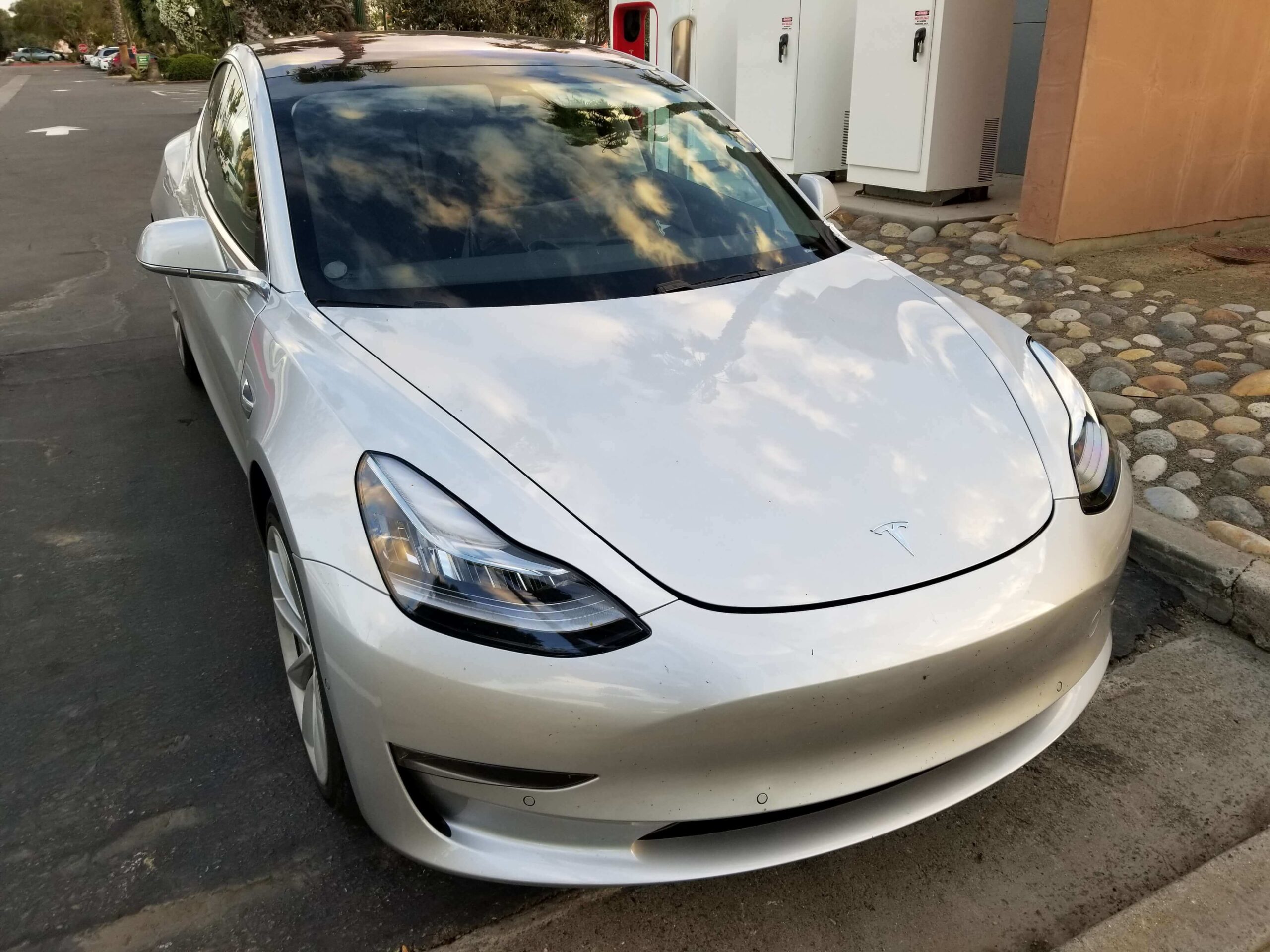 Wir konnten bisher zahlreiche Fotos und Videos vom kommenden Tesla Model 3 sehen, doch die bisher besten Bilder sind erst gestern vom Reddit-Nutzer WattLOL auf Imgur veröffentlicht worden. Dieser erblickte bei einem Halt an der Supercharger-Station Harris Ranch in Coalinga, Kalifornien, ein silbernes Tesla Model 3, welches er ohne Einschränkungen fotografieren konnte.